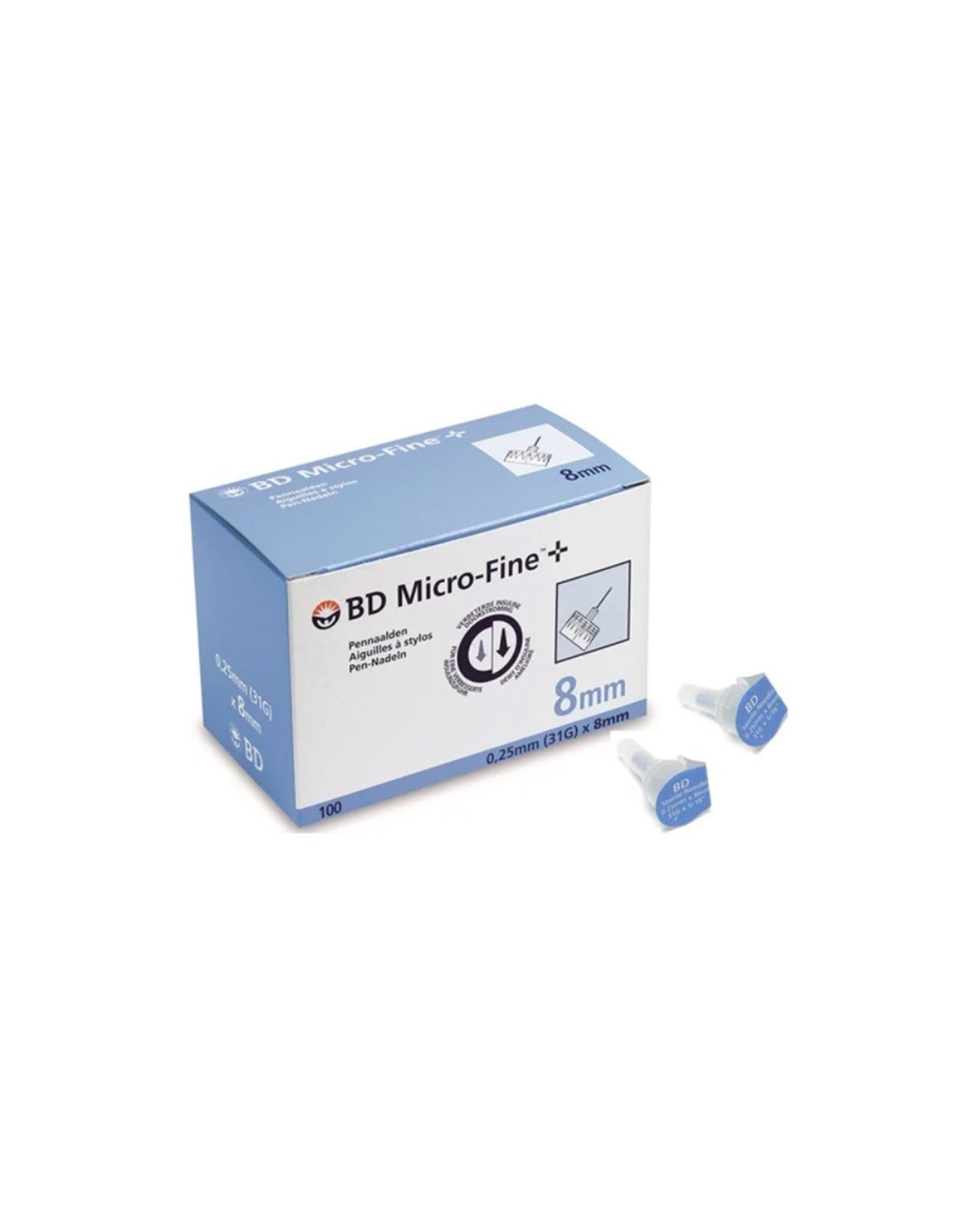 Aguja para pluma BD Micro-Fine+ de 8mm. La aguja BD Micro-Fine+ puede ser utilizada tanto para niños como para adultos. Tiene una longitud de 8mm de largo (3/16") y 31G de grosor.