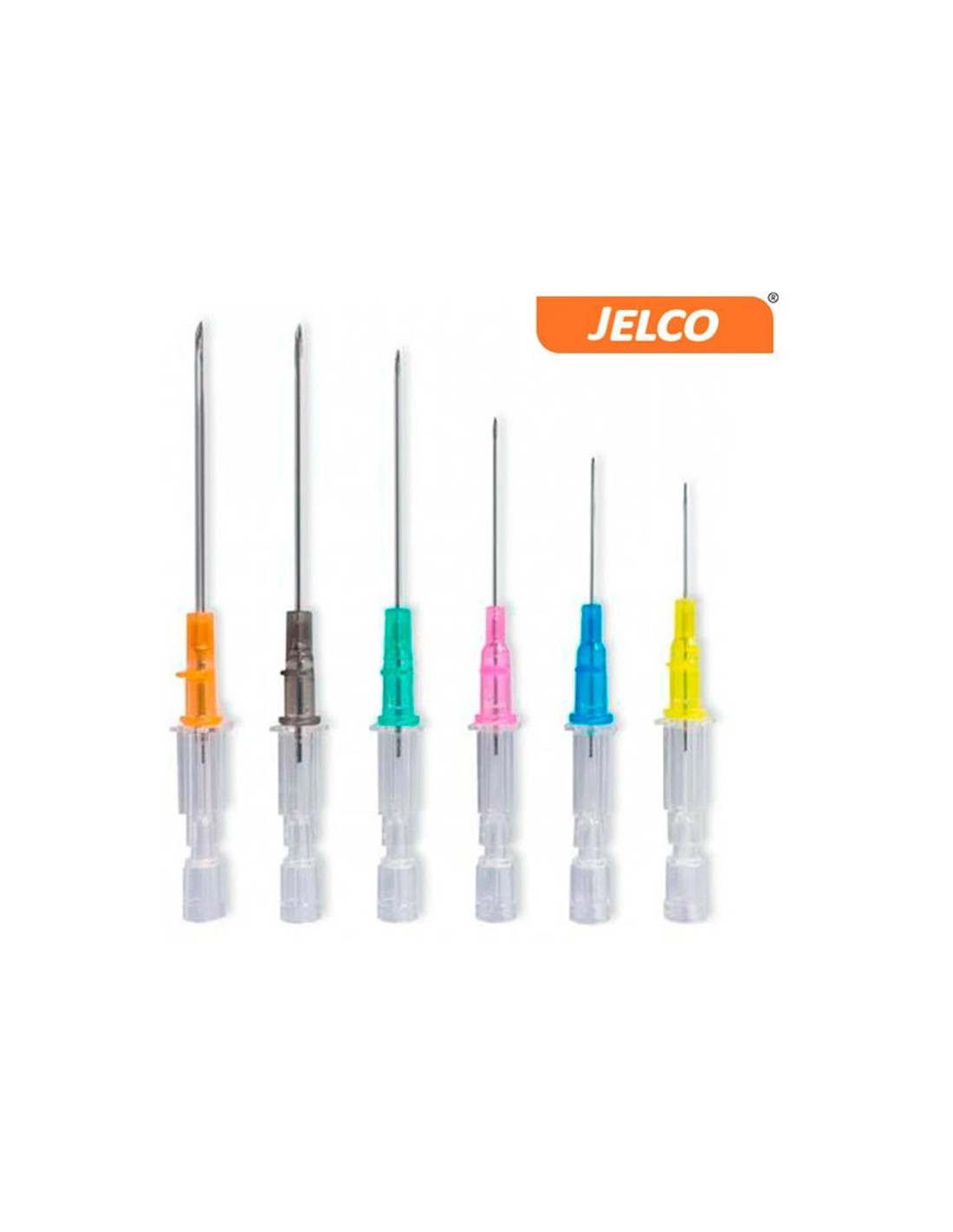 Catéter periférico Jelco estéril y de un solo uso, diseñado para la canalización segura de venas periféricas en procedimientos de infusión o administración de medicamentos.