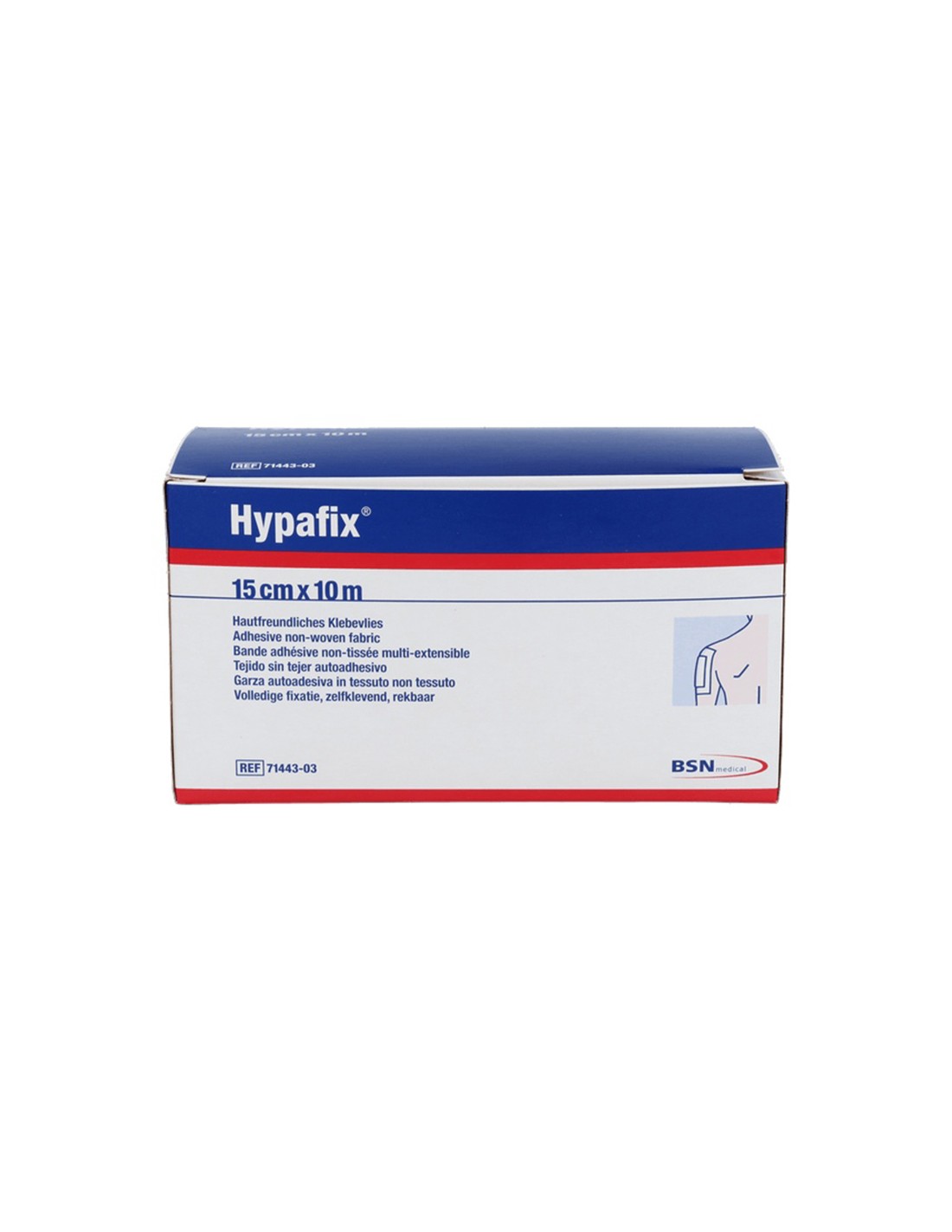 Esparadrapo Gasa Hypafix 15cmx10m, 1 ud La buena permeabilidad al aire y la humedad, permite que la piel respire fácilmente previniendo las maceraciones y reduciendo los riesgos de contaminación. Conformable, elástico, flexible y de dhesivo hipoalergénico.