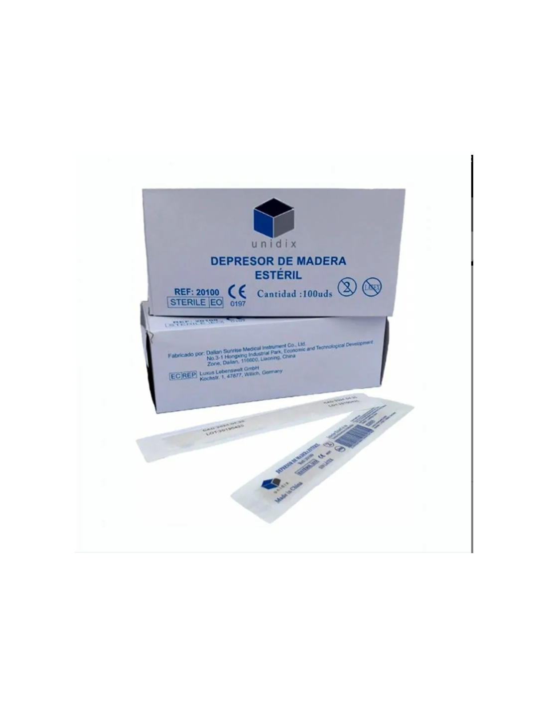 Instrumento médico para deprimir la lengua y permitir el examen de la boca y la garganta.