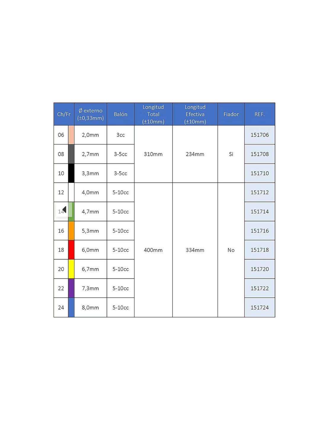 › Los calibres más pequeños (Ch 6,8 y 10) presentan un fiador para facilitar el procedimiento.